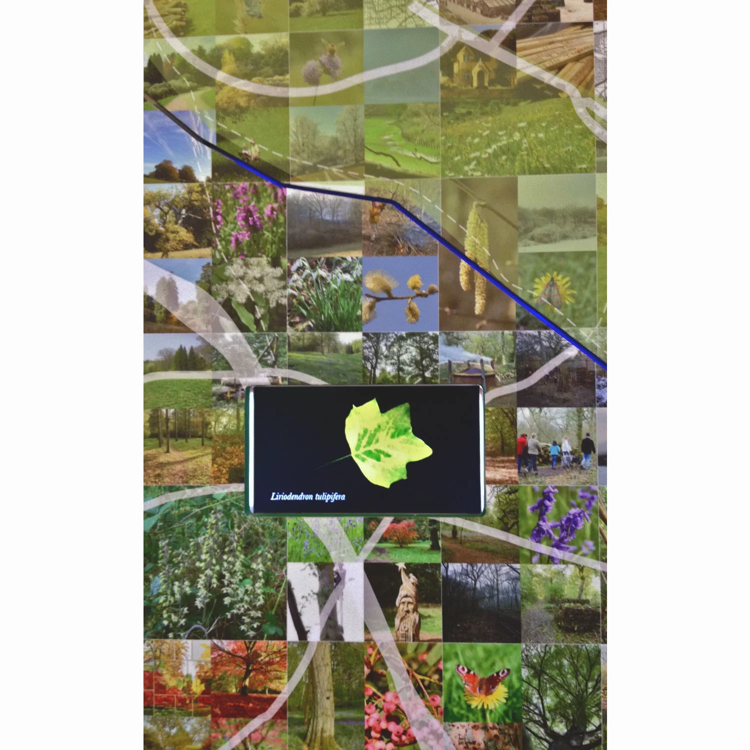 The Forestry Commission's flagship site at the National Arboretum, Westonbirt, has an exciting masterplan 'The Westonbirt Project'; a new Welcome Building was part of Phase One. Asked to deliver 4 portable pods, a ceiling sculpture and a '3D map' outside we immediately moved the content of one 'pod' onto the room's back wall, creating an impressive and clearly information-rich backdrop to the room with the aim of drawing in visitors arriving at the ticket window (at the room's opposite end). Thousands of photographs, quotes and films are embedded in an astonishingly rich resource which connects habitual visitors with what else the Arboretum has to offer.